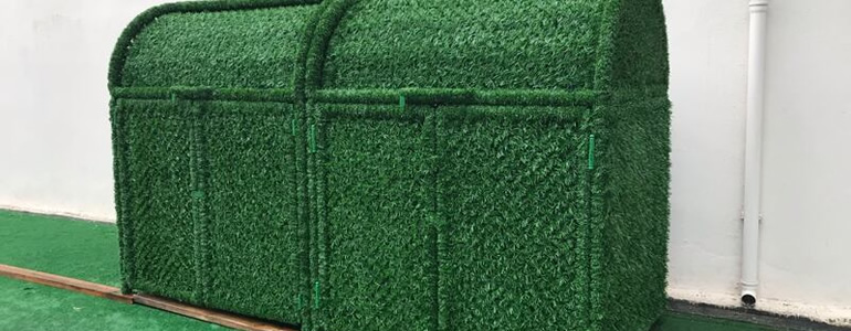Çim Çit Çöp Konteyneri, konteyner gizlenerek doğada güzel bir görünüm sağlanır. Nüfusun ve çöp konteyner sayısının fazla olduğu yerlerde mevcut konteynerlerin çöp taşım olayını gizleyerek kent estetiğinde daha güzel bir görünüm oluşturur.